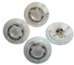 OZDOBNE GUZIKI 6szt 18mm AKRYL BIAŁO-SREBRNE