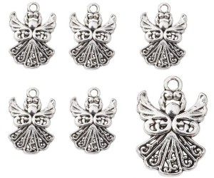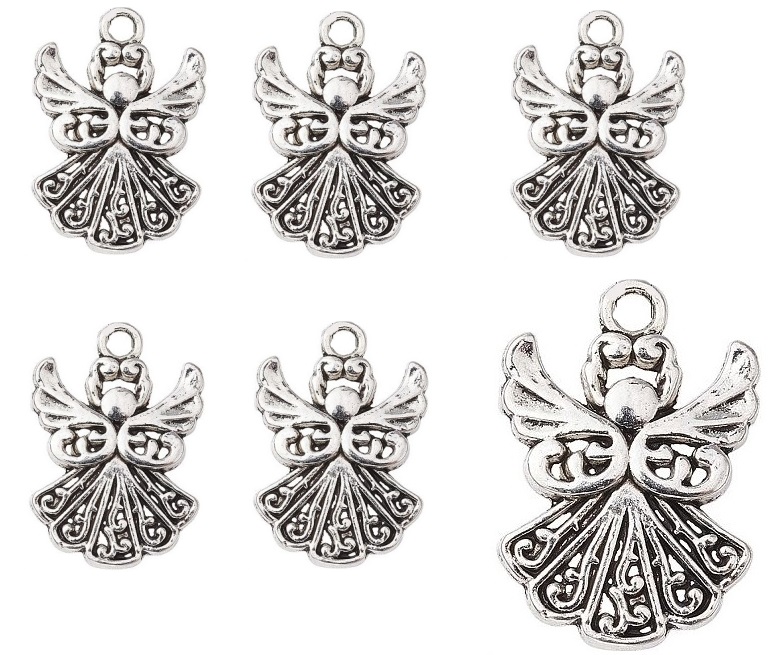 Zawieszki charms aniołki wykonane z metalu w kolorze antycznym srebrnym.