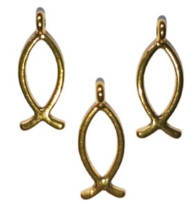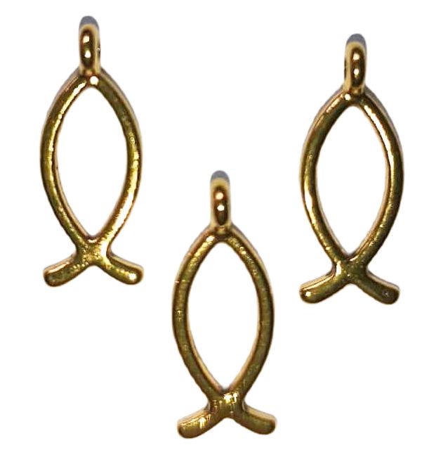 Zawieszki charms rybki, znak chrześcijaństwa , wykonane z metalu w kolorze antycznego złota.