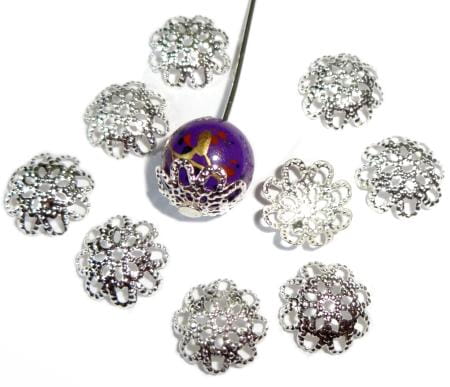 Ażurowe nakładki - kwiatuszki w kolorze srebrnym.