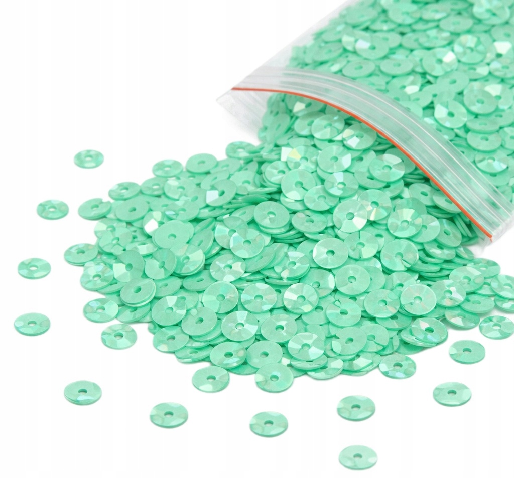 CEKINY ŁAMANE OKRĄGŁE 6MM 8G OK 400SZT MIĘTOWE DEKORACJE NA JAJKA PISANKI