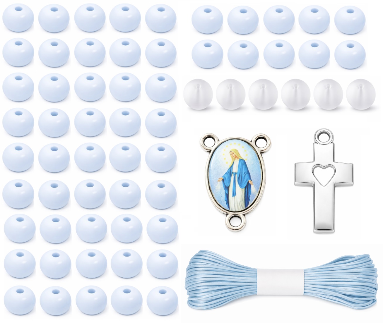 Stwórz własnoręcznie piękny, klasyczny różaniec w delikatnej biało-błękitnej kolorystyce