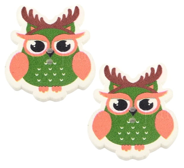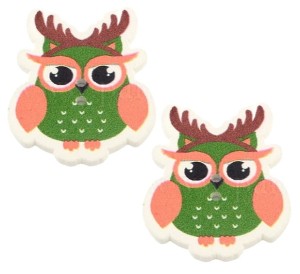 Kreatywne drewniane guziki - sowy z opaską renifera.