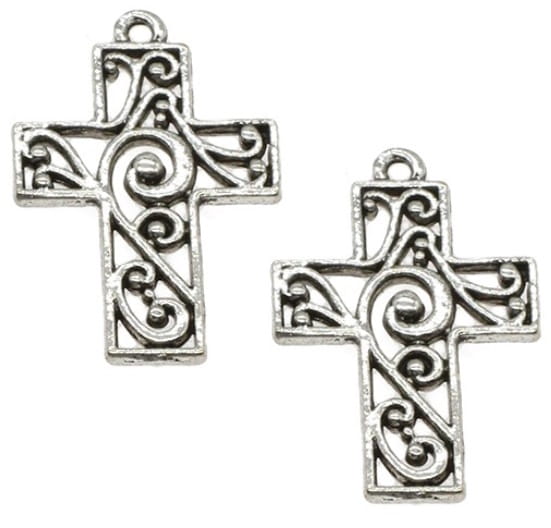 DUŻE ZAWIESZKI CHARMS AŻUROWE DUŻE KRZYŻE WISIORY 29mm 4szt DO RÓŻAŃCA