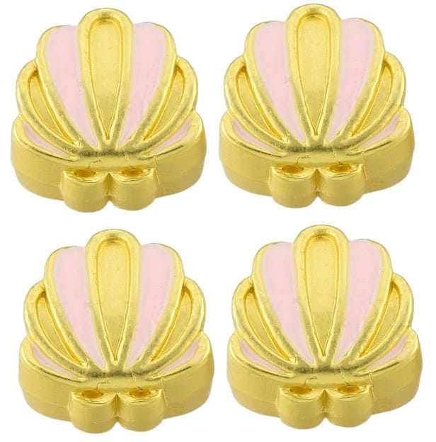 Emaliowane przekładki modułowe metalowe w złotym kolorze, idealne do robienia bransoletek na pancerkach, rzemykach czy grubszych sznurkach w kształcie muszelki.