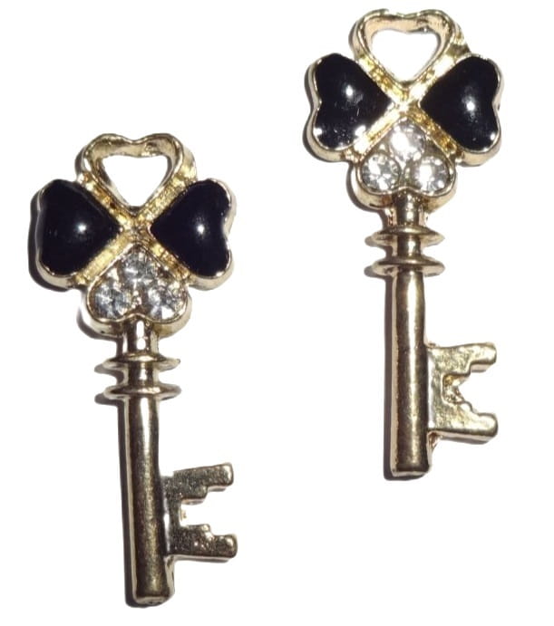Emaliowane zawieszki charms - klucze z koniczynką ozdabiane cyrkoniami w kolorze Crystal.