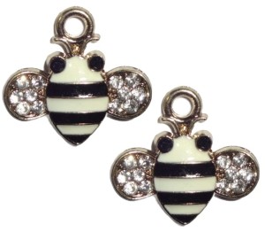 EMALIOWANE ZAWIESZKI CHARMS 2szt PSZCZOŁY CYRKONIE