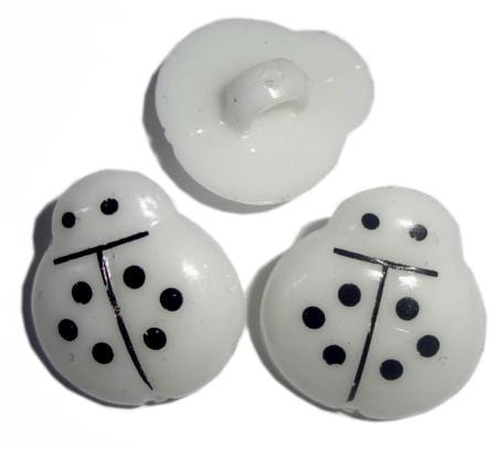Akrylowe guziki białe biedronki w czarne kropki.