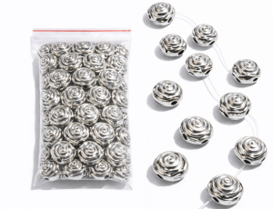 HURT AKRYLOWE PRZEKŁADKI RÓŻE 8mm 100szt RÓŻYCZKI SREBRNE