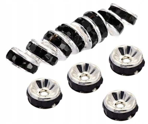 HURT CZARNE PRZEKŁADKI Z CYRKONIAMI 8 MM 30 SZT