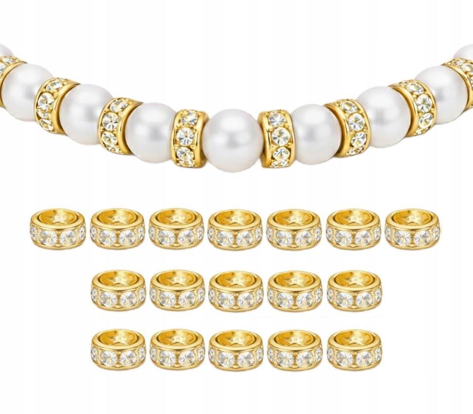 Stylowe przekładki jubilerskie zdobione błyszczącymi, okrągłymi cyrkoniami o diamentowym szlifie. Pięknie odbijają światło, dodając biżuterii luksusowego charakteru i wyrazistego blasku. Idealne do bransoletek, naszyjników oraz projektów handmade. Wysoka jakość wykonania i ponadczasowy design sprawiają, że doskonale komponują się z perłami, i koralikami zarówno szklanymi jak i akrylowymiPrzekładki z cyrkoniami CRISTAL kolor złoty.