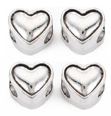 Koraliki modułowe metalowe w antycznym srebrnym kolorze w kształcie serca, idealne do robienia bransoletek na pancerkach, rzemykach czy grubszych sznurkach. Przekładki można użyć do robienia różańców lub walentynkowej biżuterii.