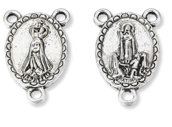 Łączniki do robienia różańca, Matka Boska wykonane z metalu w kolorze antycznym srebrnym.