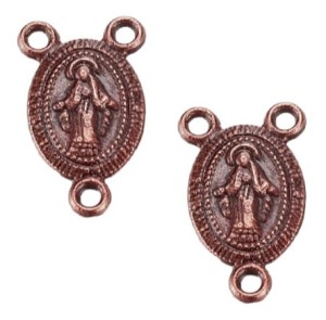 Łączniki do robienia różańca dwustronne Matka Boska wykonane z metalu w kolorze antycznym brązowym.
