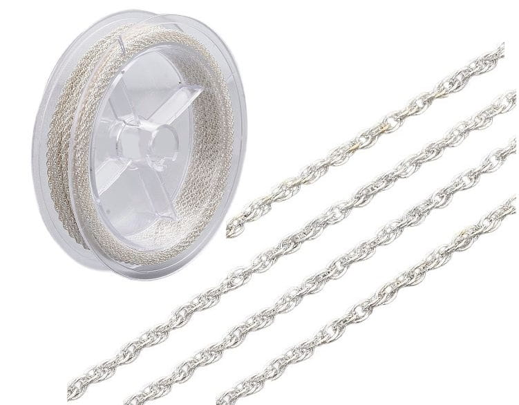 Łańcuszek ozdobny w kolorze srebra. Nawinięty na rolkę, idealny do produkcji biżuterii.