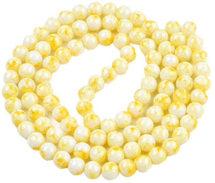 MARMURKI KORALIKI SZKLANE 8mm 50szt SZKŁO ŻÓŁTO-BIAŁE KULKI DO BRANSOLETEK