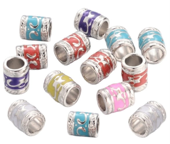 Koraliki modułowe metalowe emaliowane tunele, idealne do robienia bransoletek na pancerkach, rzemykach czy sznurkach.
