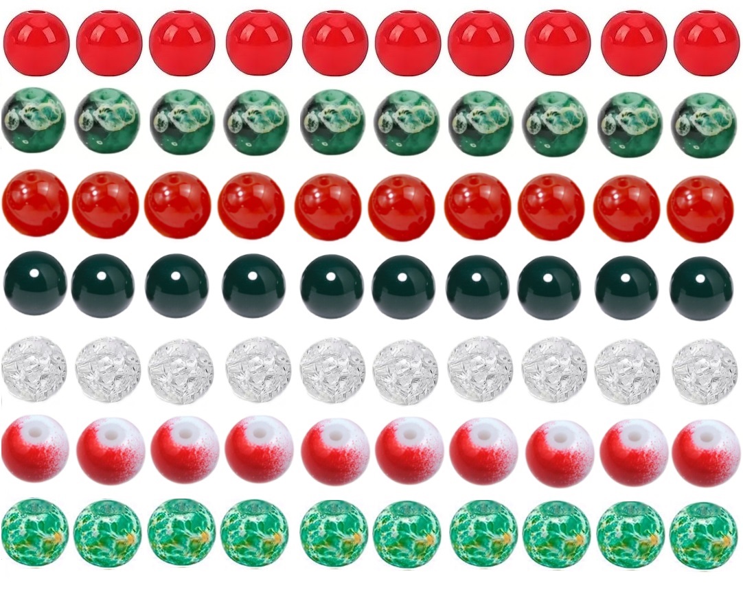 Koraliki szklane świąteczne, idealne do robienia modnych bransoletek, breloków