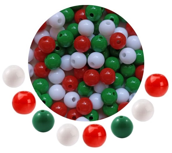 MIKS ZESTAW KORALIKÓW 100SZT KORALIKI KULKI GŁADKIE AKRYLOWE ŚWIATECZNE