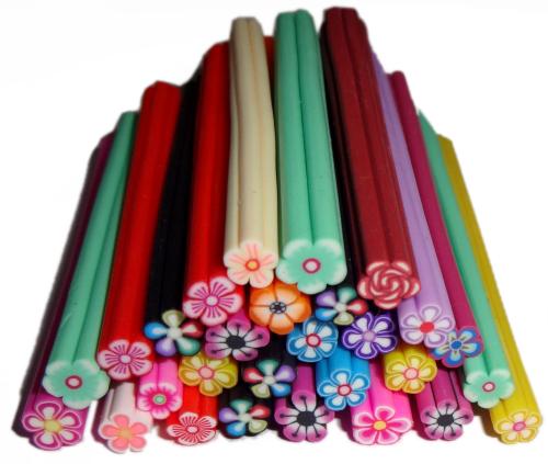 Utwardzone patyczki fimo, idealnie do zdobienia paznokci lub scrapbookingu. Patyczki mają średnicę 3-6mm, są twarde dlatego najlepiej ciąć je nożykiem do tapet.