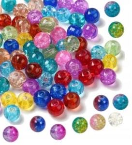 MIX KORALIKI SZKLANE CRACKLE 8mm 200szt SPĘKANE KULE KOLOROWE