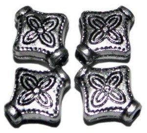 Akrylowe koraliki, przekładki romby w kolorze antycznym srebrnym.