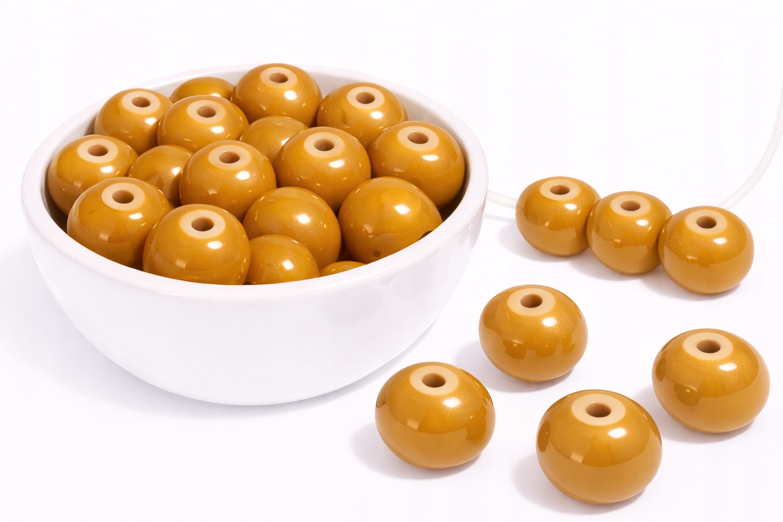 POWLEKANE KORALIKI SZKLANE MUSZTARDOWE 8mm 50szt SZKŁO KULA