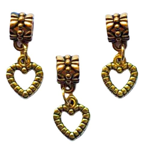 Metalowe, modułowe przekładki z uszkiem z zawieszką charms kulkowym sercem, idealne do robienia bransoletek na pancerkach, rzemykach czy grubszych sznurkach z okazji Walentynek, Dnia Mamy, Dnia Babci, Urodzin.