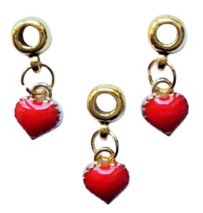 Metalowe, modułowe przekładki z uszkiem z zawieszką charms emaliowanym, czerwonym sercem, idealne do robienia bransoletek na pancerkach, rzemykach czy grubszych sznurkach z okazji Walentynek, Dnia Mamy, Dnia Babci, Urodzin.