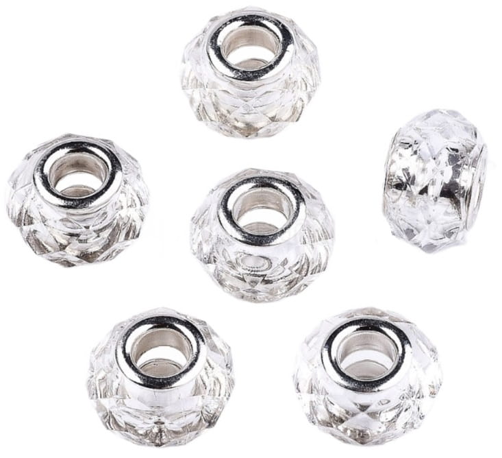 Koraliki modułowe szlifowane, przeźroczyste oponki z żywicy z metalowym środkiem idealnie do robienia bransoletek na pancerkach, rzemykach czy grubszych sznurkach.