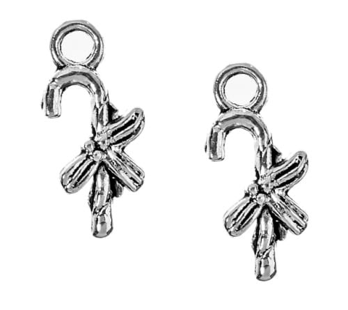 Zawieszki charms laski Świętego Mikołaja wykonane z metalu w kolorze antycznego srebra.