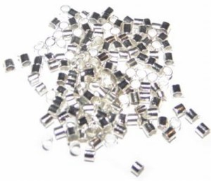Posrebrzane stopery, okrągłe zaciski do linki w kolorze srebrnym.