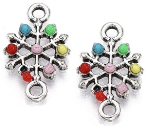 Kolorowy łącznik z świątecznym motywem śnieżynki, idealny do robienia bransoletek z okazji Świąt Bożego Narodzenia, Mikołaja.
