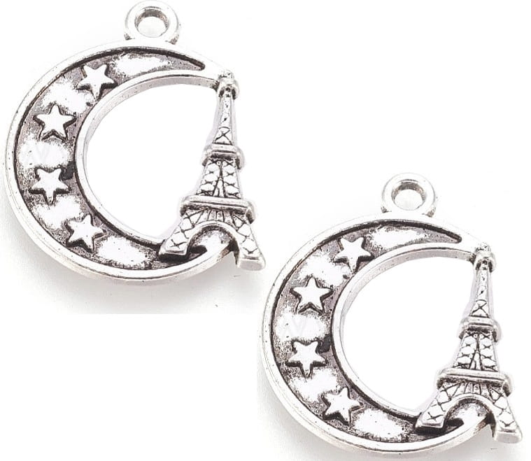 ZAWIESZKA CHARMS KSIĘŻYC WIEŻA EIFFLA 8szt 22mm