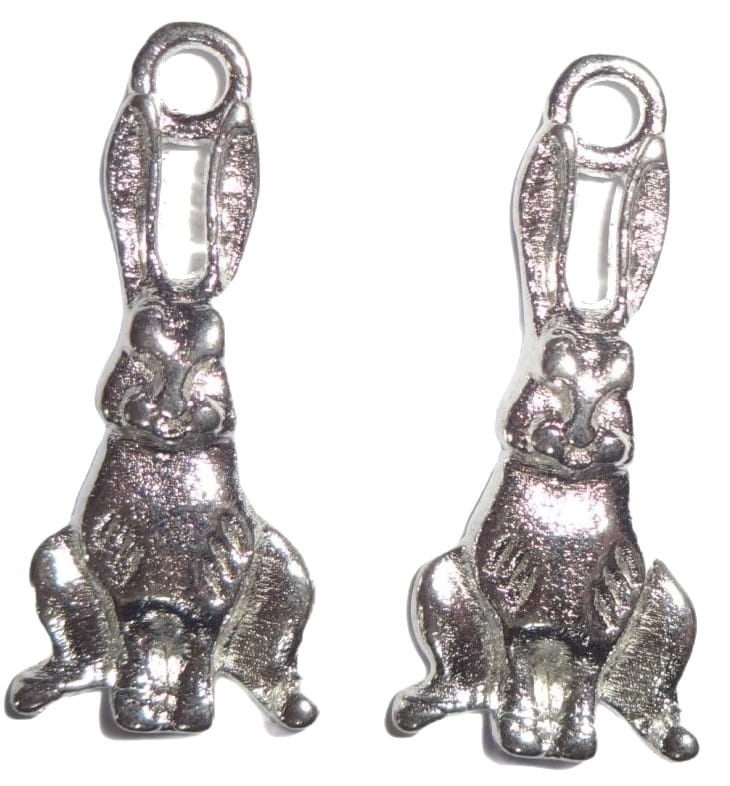 Zawieszki zajączki - króliczki wykonane z metalu w kolorze srebra, idealne do wykonania biżuterii i ozdób na Wielkanoc.