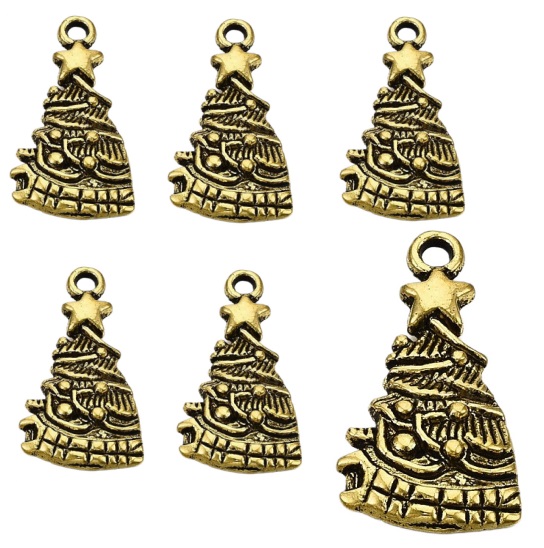 Zawieszki charms choinki, wykonane ze srebra tybetańskiego w kolorze antycznym złotym, idealnie nadają się do wykonania biżuterii na Bożonarodzeniowy prezent.