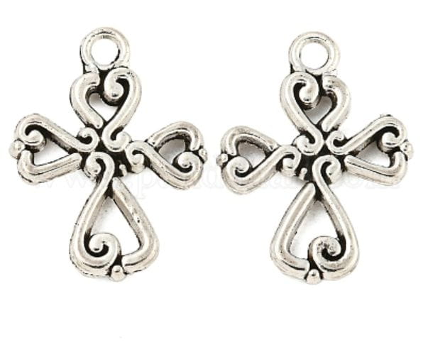 Zawieszki charms ozdobne krzyżyki wykonane z metalu w kolorze antycznym srebrnym.