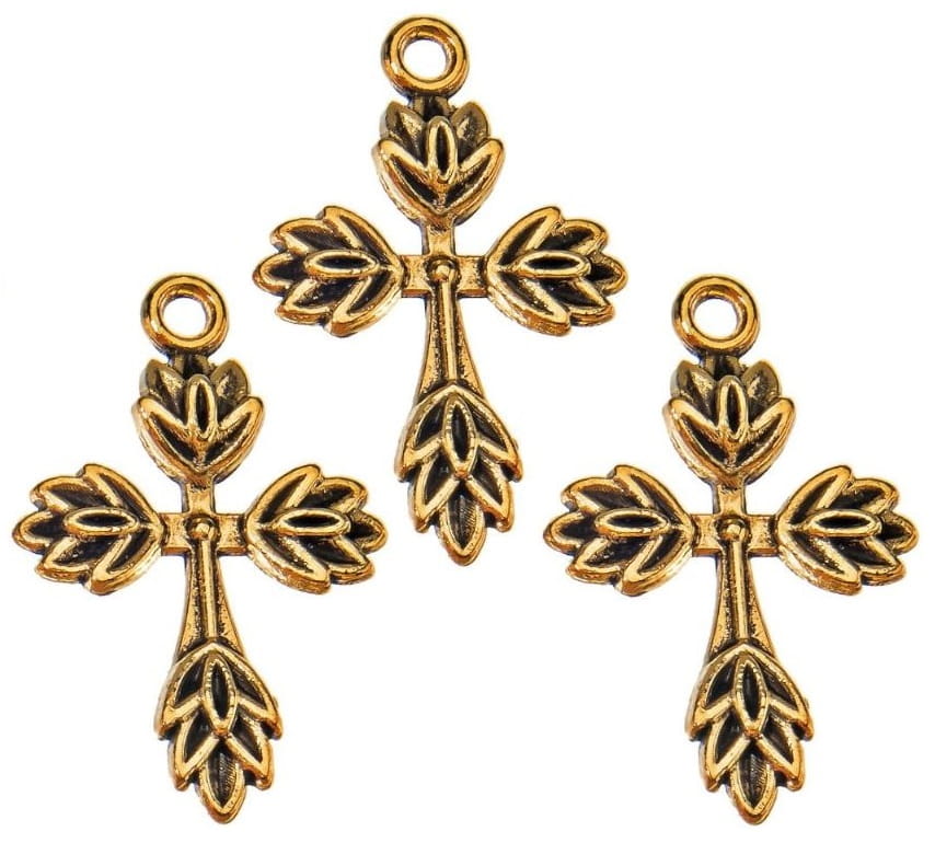 Zawieszki charms - wisiorki, ozdobne krzyże wykonane z metalu w kolorze antycznym złotym.