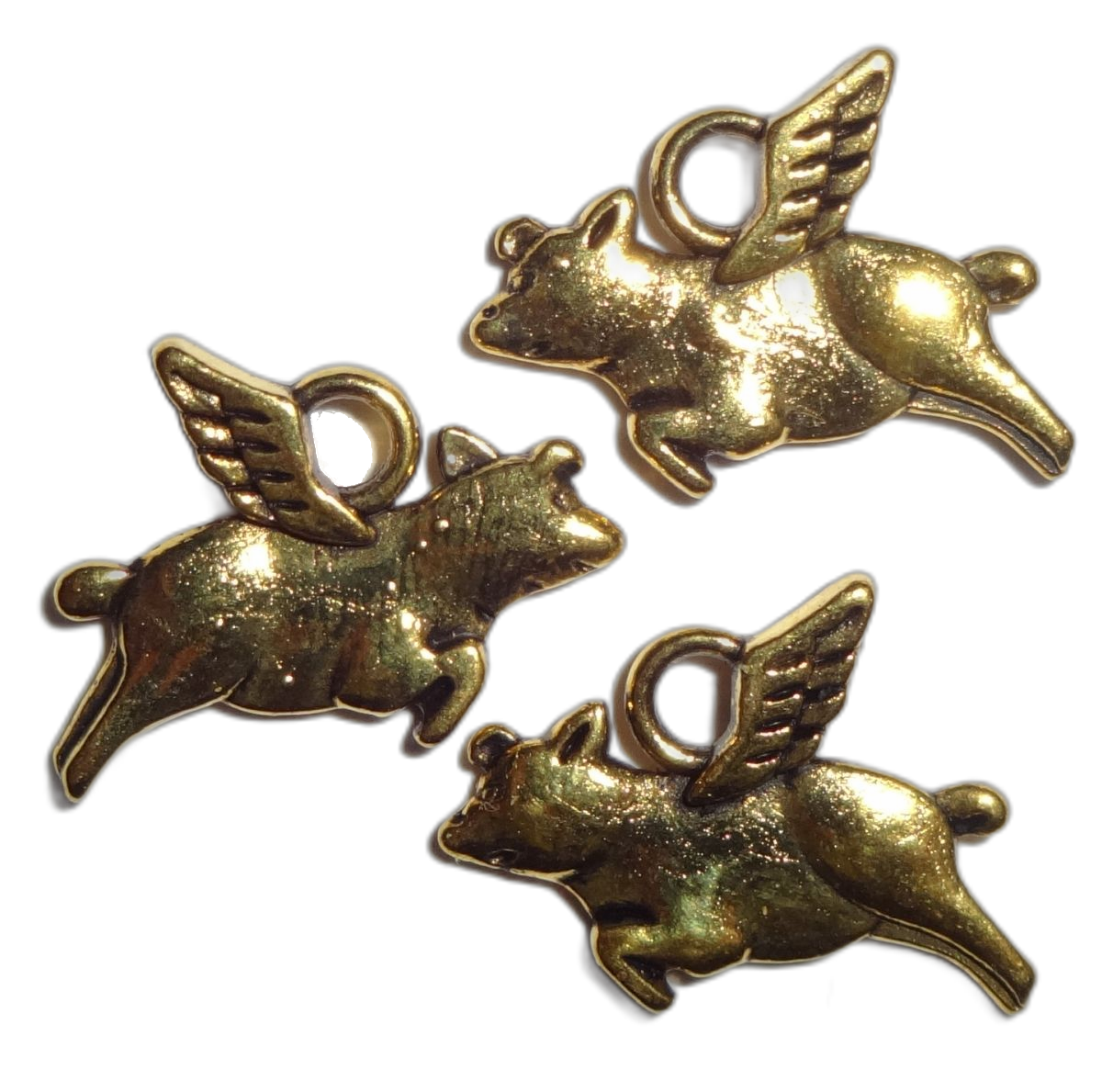 Zawieszki charms metalowe - latające świnie - świnki ze skrzydełkami, w kolorze antycznym złotym, idealne do robienia biżuterii..