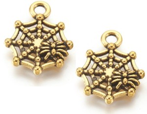 Zawieszki charms metalowe: pająk na pajęczynie w kolorze antycznym złotym, idealne do robienia biżuterii na Halloween.
