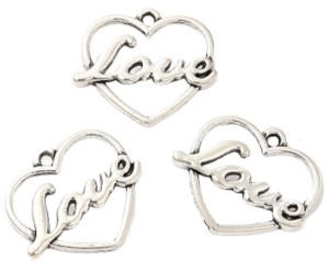 Zawieszki charms - metalowe serca z napisem Love w kolorze antycznym srebrnym, idealne do robienia biżuterii.