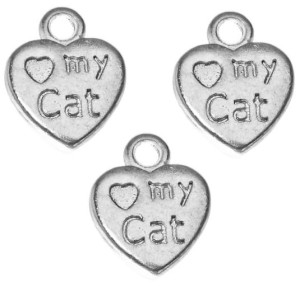 Zawieszki charms w kształcie serca love my cat wykonane ze srebra tybetańskiego w kolorze antycznym srebrnym.
