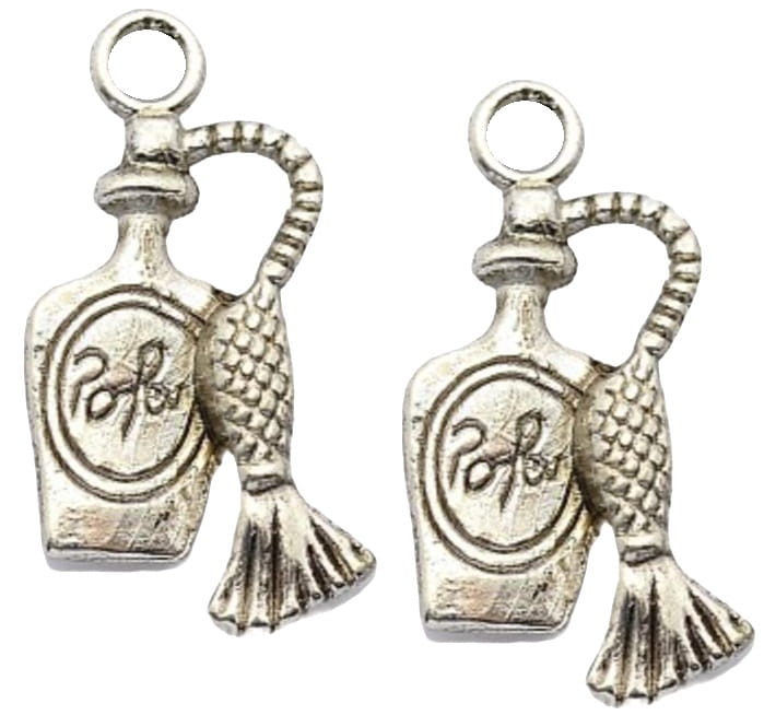 Zawieszki charms perfumy 3d wykonane z metalu w kolorze antycznym srebrnym.