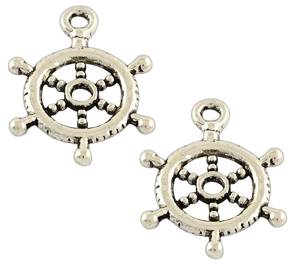 Zawieszki charms stery wykonane z metalu w kolorze antycznym srebrnym świetnie sprawdzą się do wykonania biżuterii na wakacje w stylu marynistycznym.