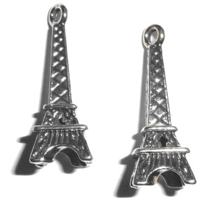 Zawieszki charms wieża Eiffla wykonane ze stopu metalu w kolorze antycznym srebrnym.