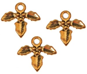 Zawieszki charms metalowe - jemioła w złotym kolorze, idealna do robienia świątecznej biżuterii na prezent na Boże Narodzenie.