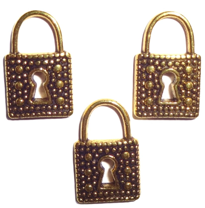 Zawieszki charms kłódki wykonane z metalu w kolorze antycznym złotym.