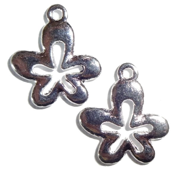 Zawieszki charms kwiatki wykonane z metalu w kolorze srebrnym.