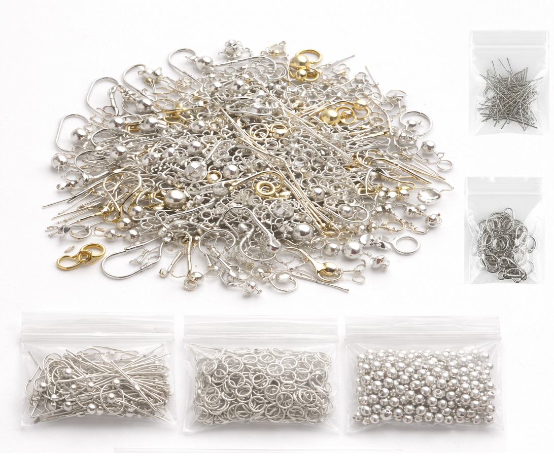 Co może występować w zestawie: bigle, szpilki, haczyki, zatyczki kółka , kuleczki, łapaczki, zaciski, łańcuszki itp