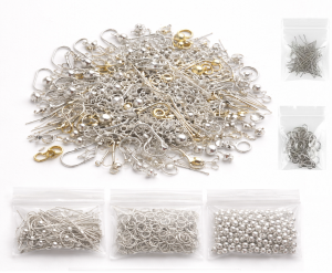 Zestaw półfabrykatów do robienia biżuterii, kolczyków w kolorze srebrnym mogą się pojawić także złote.